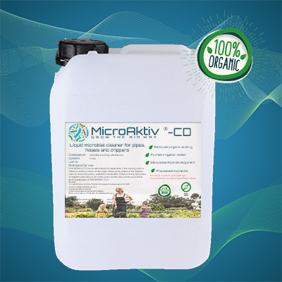 Bakterierne i MicroAktiv®-CD er harmløse, naturligt forekommende klasse 1 mikroorganismer og holder naturligt vandforsyningssystemet fri for blokeringer. Produktet arbejder fra gødningstanken til drypperne. MicroAktiv®-CD holder ikke kun rørene fri for blokeringer, men stimulerer også afgrødens rodudvikling.